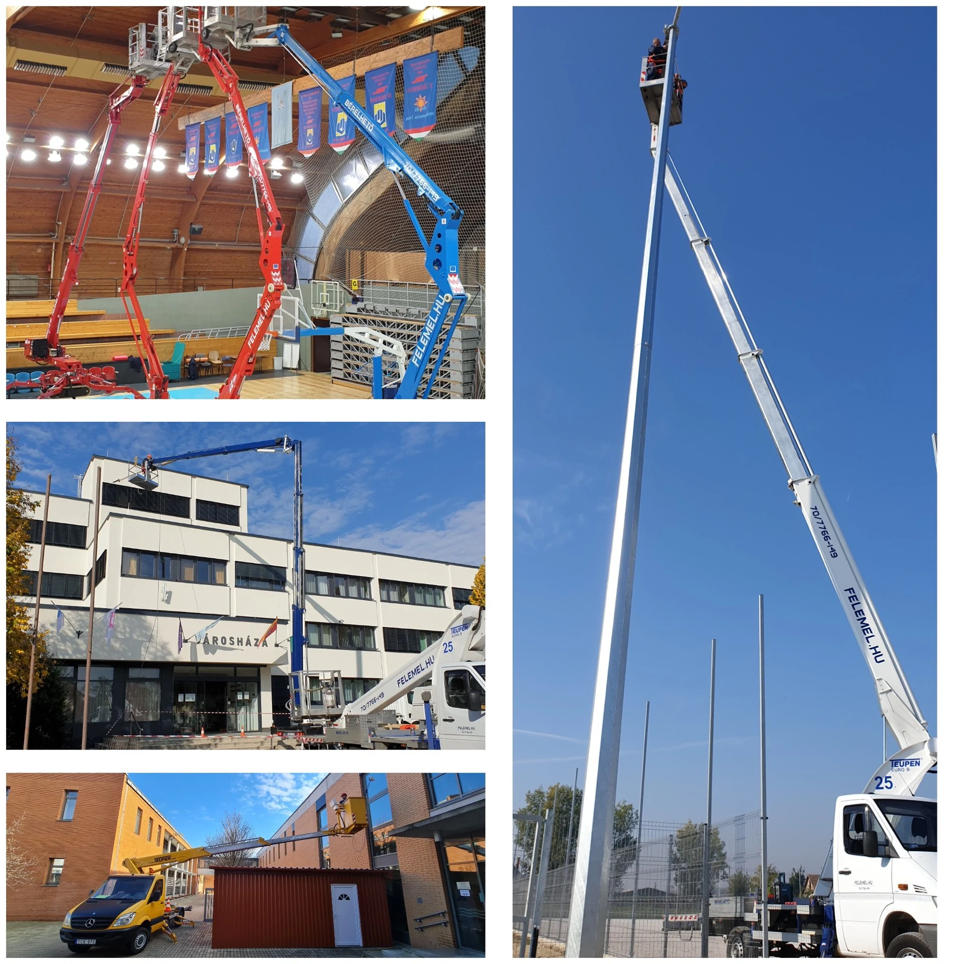 8 db emelőkosaras géppel rendelkezünk, melyekkel hatékonyan és biztonságosan tudunk megrendelőink rendelkezésére állni kül-és beltérben speciális feladatok elvégzésével.
